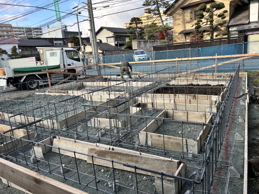 スタッフの頑張りもあり、作業が予定より早く進み、今日は鉄筋組みが完了しました。