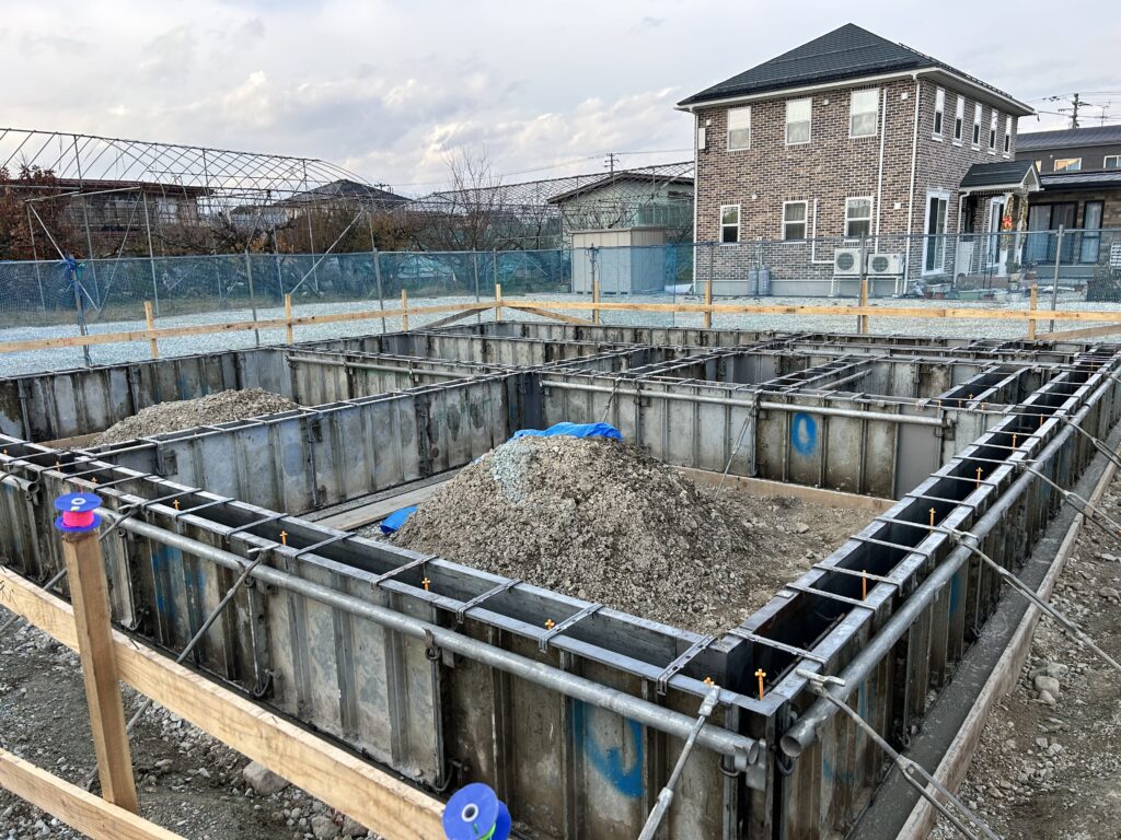 鉄筋組み、ベース打設も終わり、本日、型組みを行いました。